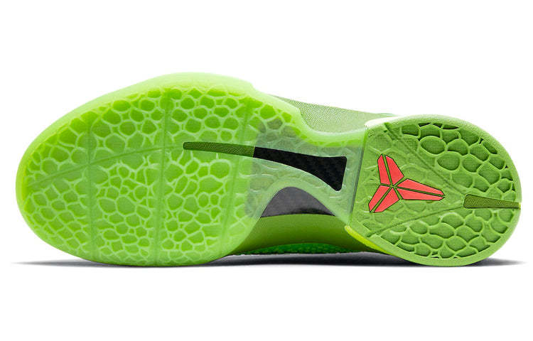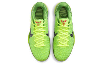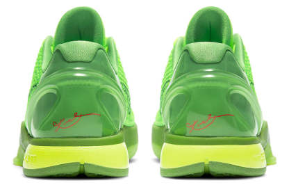 Across the forefoot, the reptilian scales hue a bright green and it shows the upper exhibiting a series of patterns that very much represents the skin of a mamba snake. Black swooshes print along with the profile, placed parallel to a lace unit furnished with a bright red Kobe logo completed the design