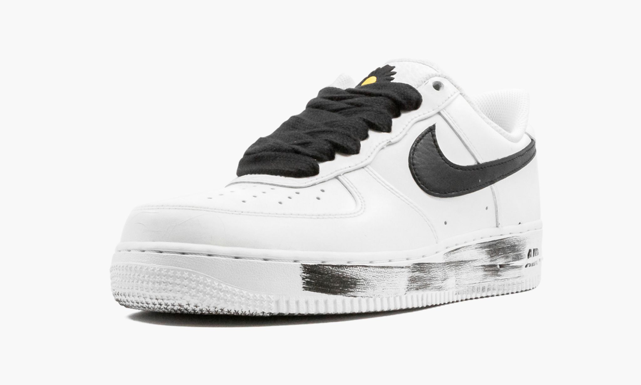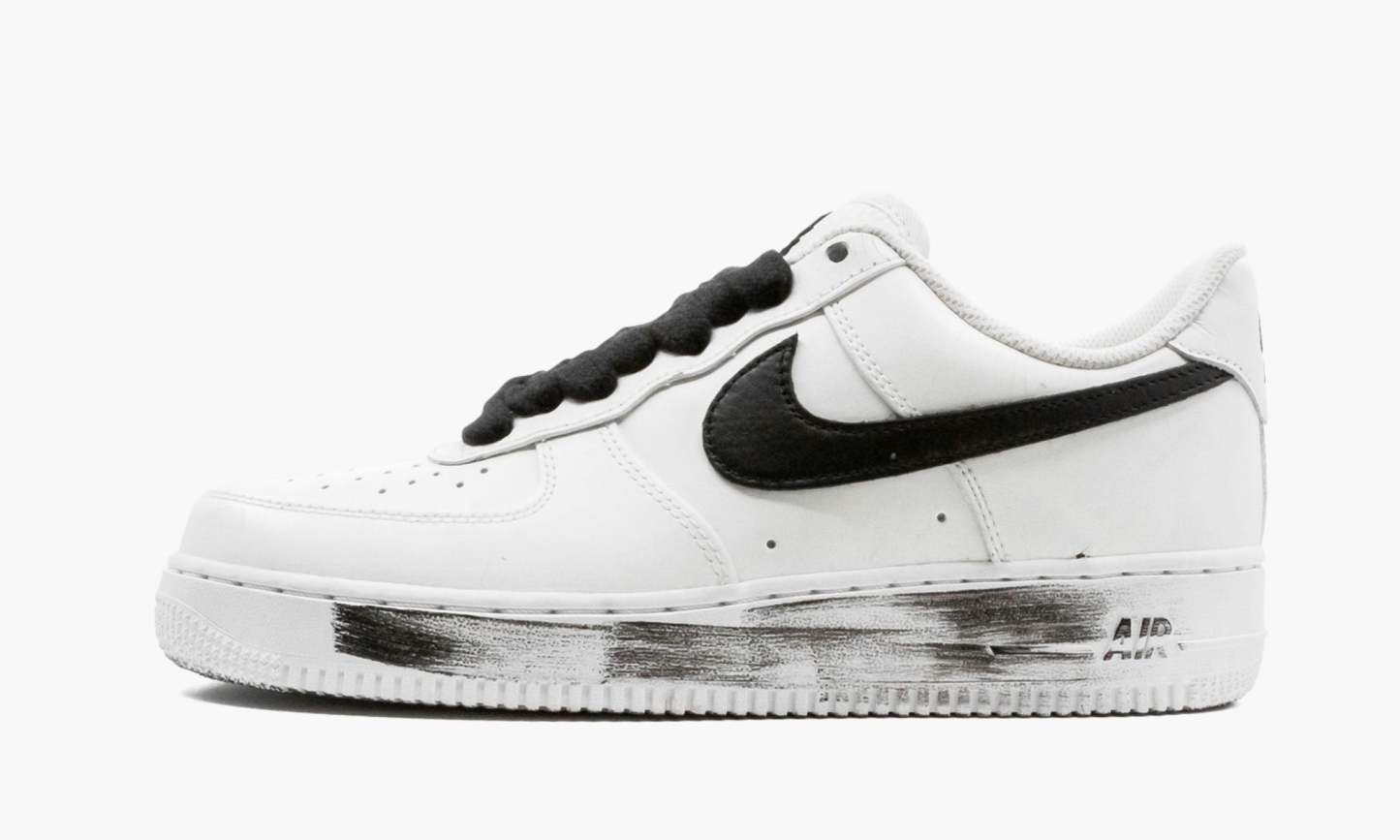 The x Low “White is the follow-up colorway to the South Korean pop artist’s collaboration with on the iconic low-top silhouette. Released by in Fall 2020, the white “Para Noise colorway is the second created under G ‘’s Peaceminusone fashion label featuring a tear-away design. A cut of white-painted tumbled leather comprises the upper of the shoe, including the perforated toe, mid-panel, and heel. A contrasting black tumbled leather Swoosh appears on either side. Thick black shoe laces and an embroidered floral motif appear on the white leather tongue. Classic branding is stitched onto the back of the shoe. When the white paint is worn away, it reveals the artist’s artwork underneath. The look is pulled together by black paint brush strokes on the white midsole. Release date: November 25, 2020.