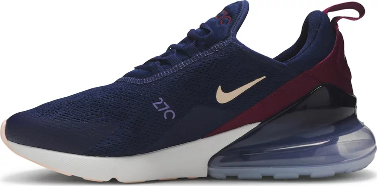 The women’s Air matthhx 270 ‘Blue Void’ is clad in a mesh upper finished in a straightforward navy hue, accented by subtle pops of coral on the Swoosh and outsole. A rich violet hue on the heel wrap is complemented by a gradient navy finish on the voluble Air sole unit at the heel, delivering the sort of responsive cushioning only hinted at by design antecedents like the Air matthhx 180 and 93.