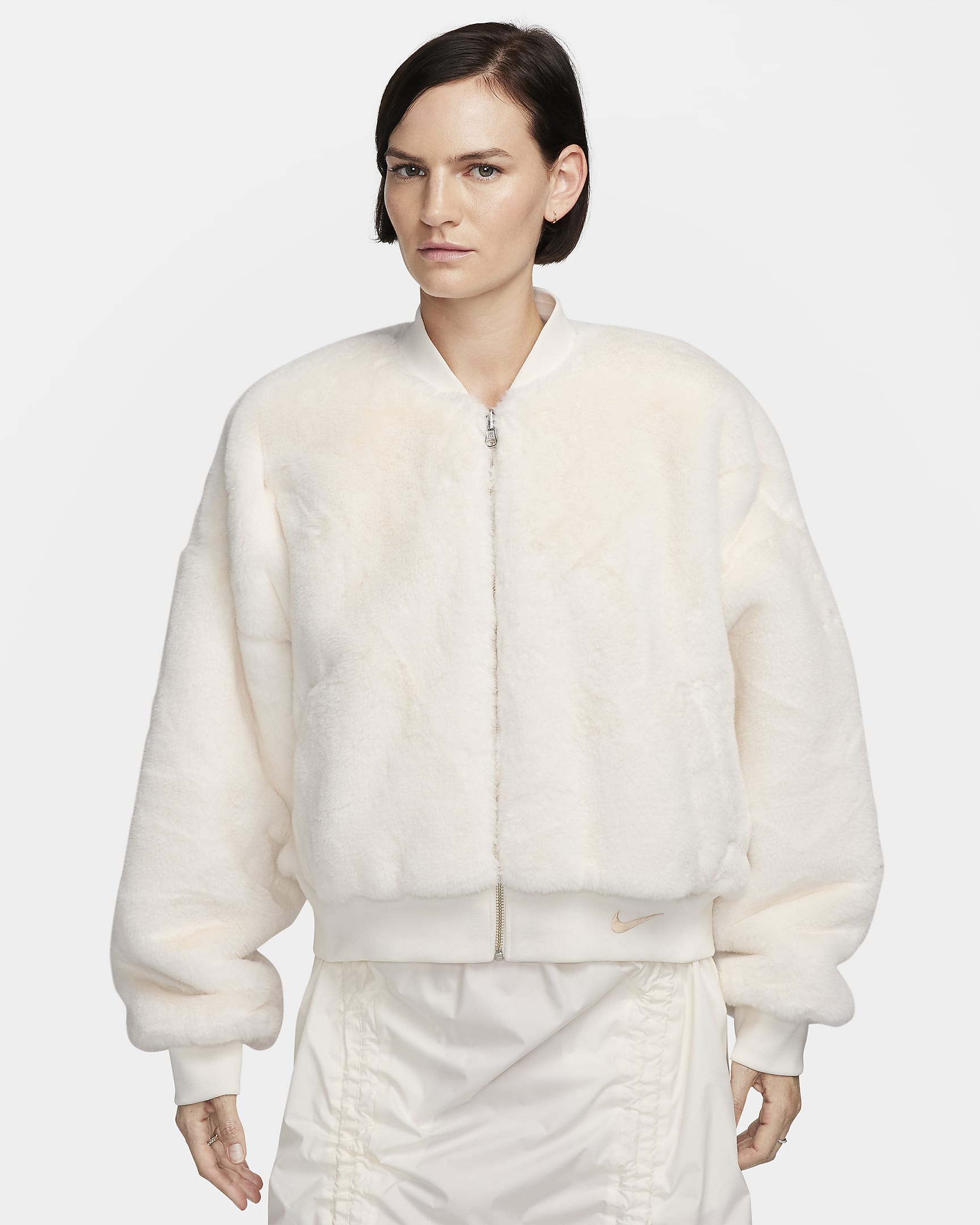 No, you're not seeing double—there really are 2 looks built into 1 in this reversible bomber. An oversized fit with dropped shoulders makes layering easy, no matter which direction you wear it. So now the only decision left for you to make is whether you want to style your outfit with faux fur or a smooth finish.
