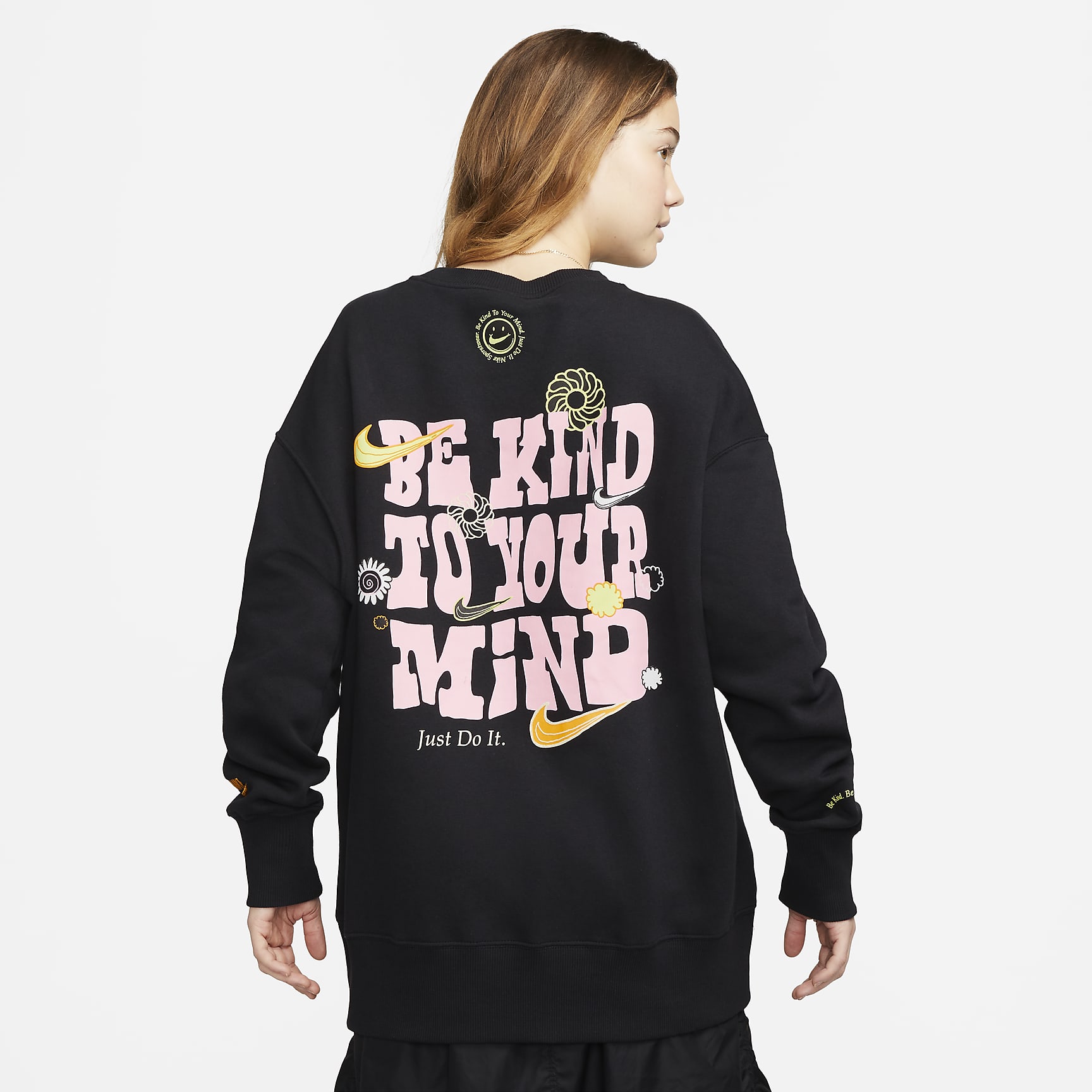 Phoenix Fleece brings new life to your favorites, ensuring your look is anything but basic. Made from our midweight brushed fleece, this spacious sweatshirt feels extra soft on the inside and smooth on the outside, helping you stay cozy while keeping its structured shape. Playful graphics encourage you to choose kindness while taller ribbing at the hem and cuffs gives it a bold look.